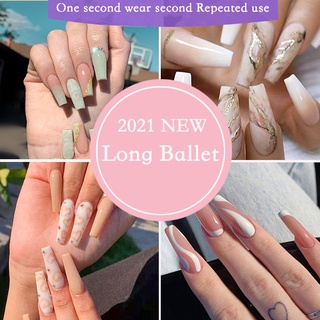 Jual 2021 Trends Acrylic Nails 24pcs Fake Nails Set With Glue False Nails Long Nail Fake Diamond Nails W Shopee Indonesia